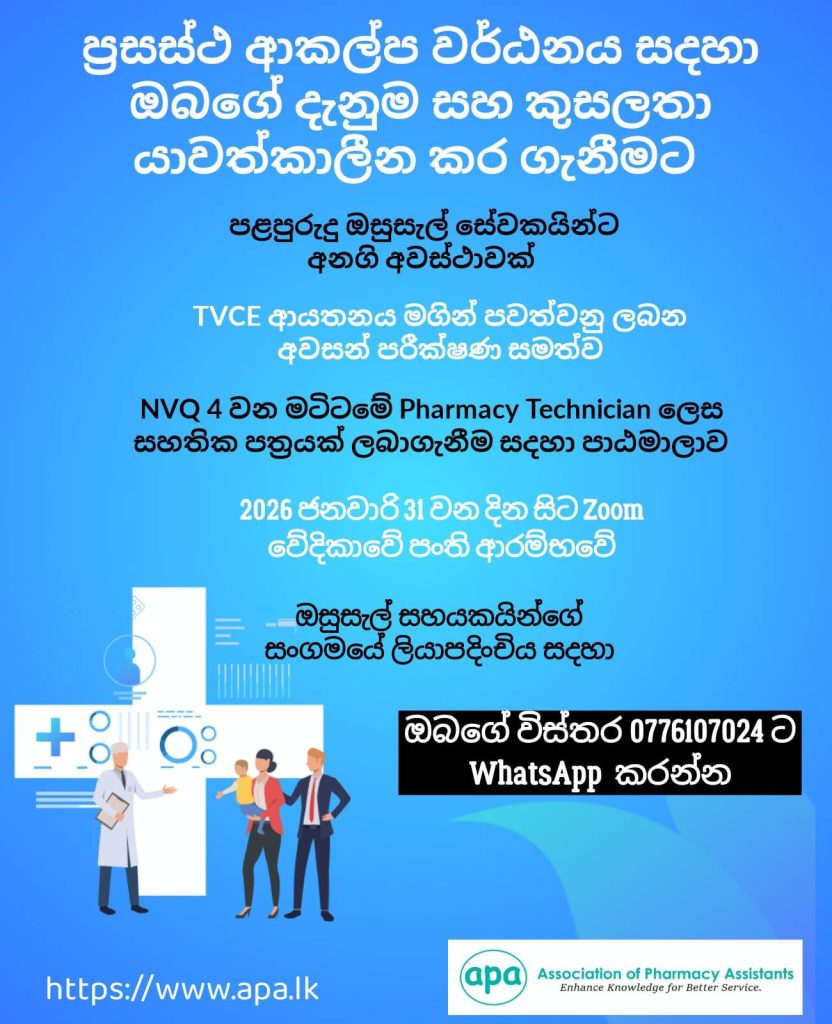 කරුණාකර ඔබගේ නම සහ ඔසුසලේ නම සහ ලිපිනය බැංකු රිසිට්පතේ ලියා බැංකු රිසිට්පත Whatsapp මගින් අපට එවන්න : 0776107024